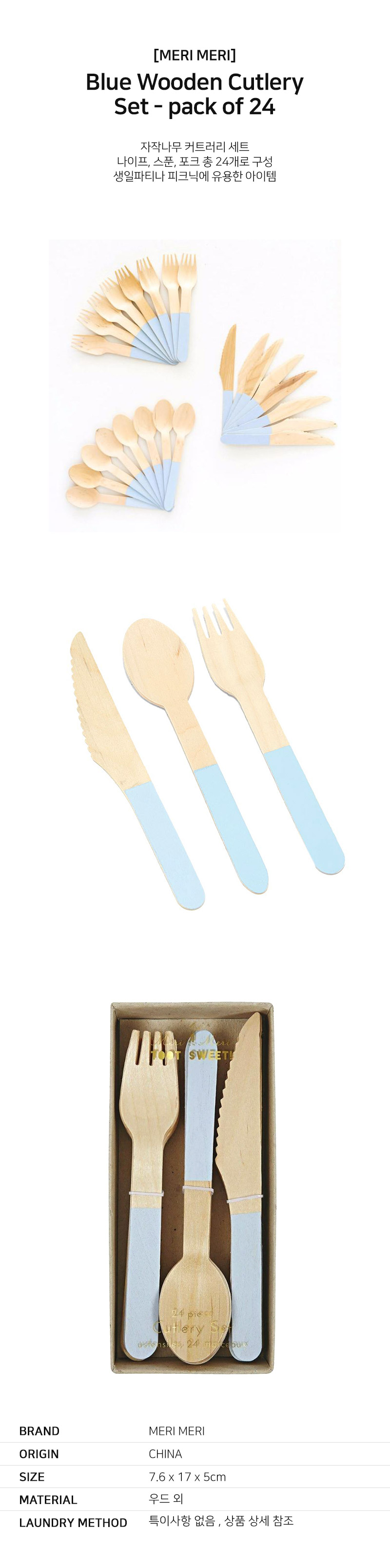 Blue Wooden Cutlery Set (24개 세트)_ME143434