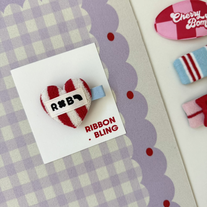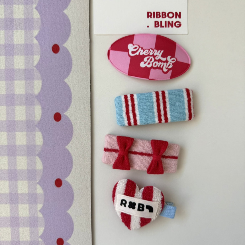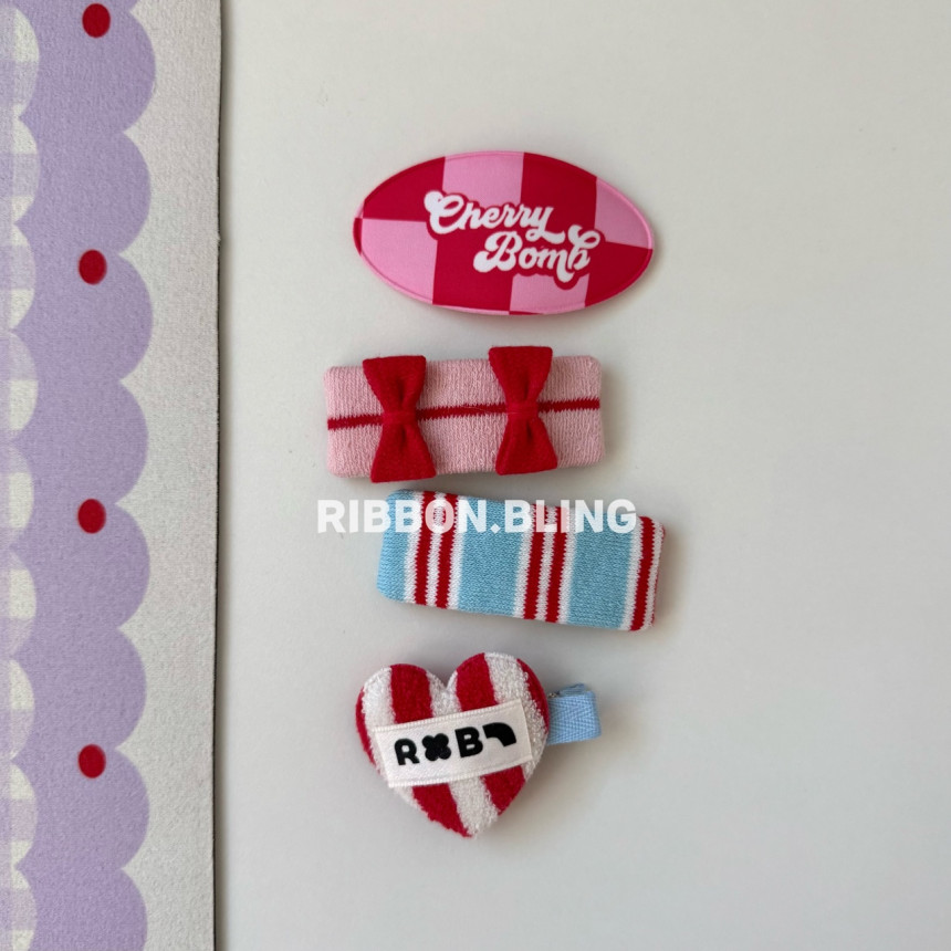 1.cherry bomb/2. 레드 세로하트 집게/3.핫핫 리본리본(레드)/4.테리 세로 스트라이프(레드)