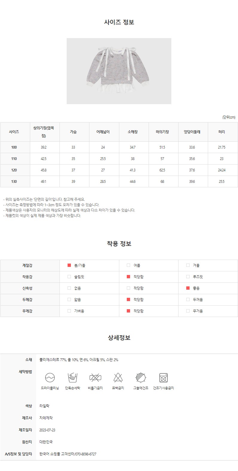 - 세탁방법 및 취급시 주의사항