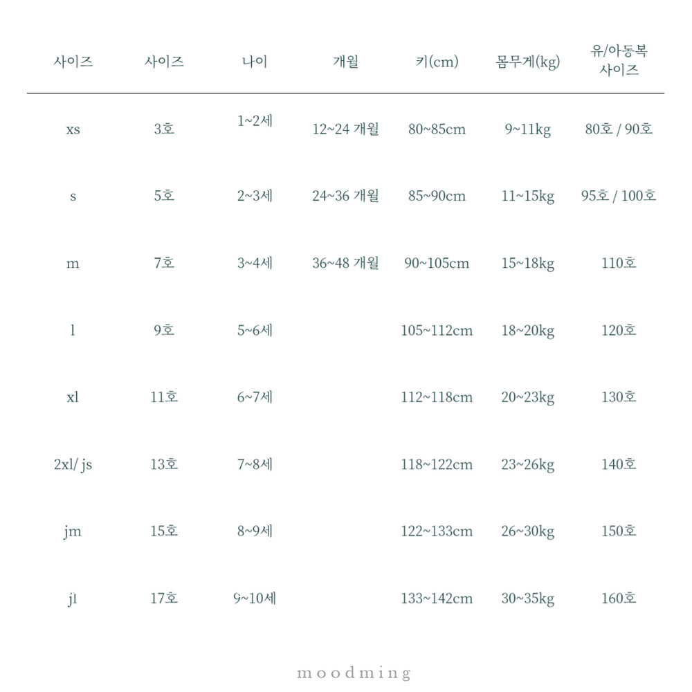 아동복 표준사이즈