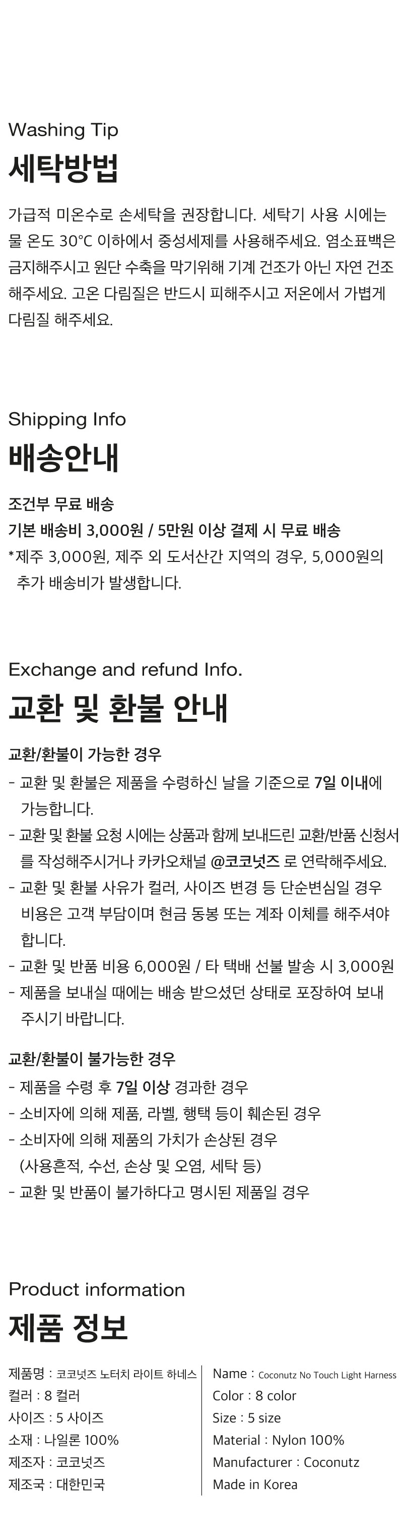 - 세탁방법 및 취급시 주의사항