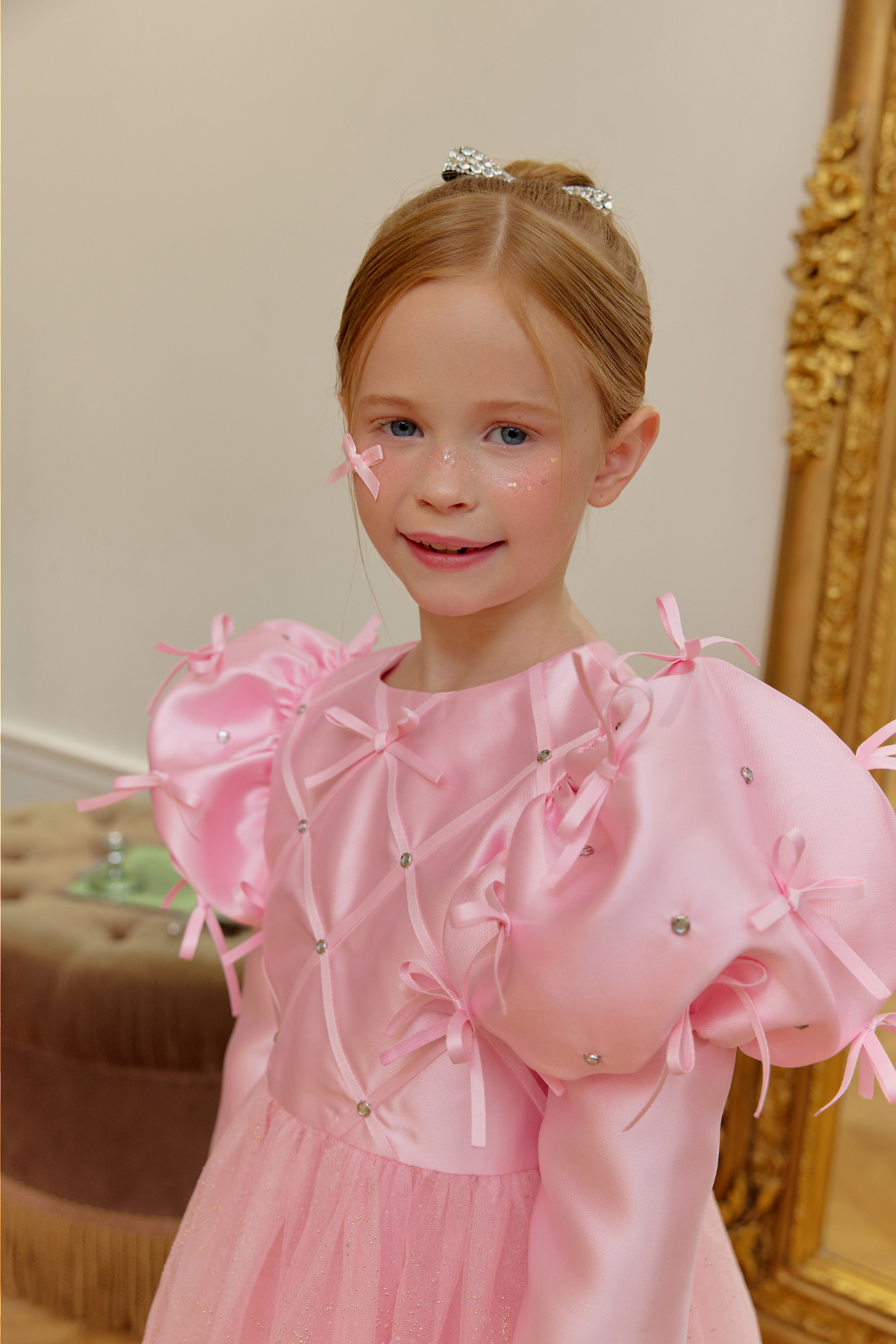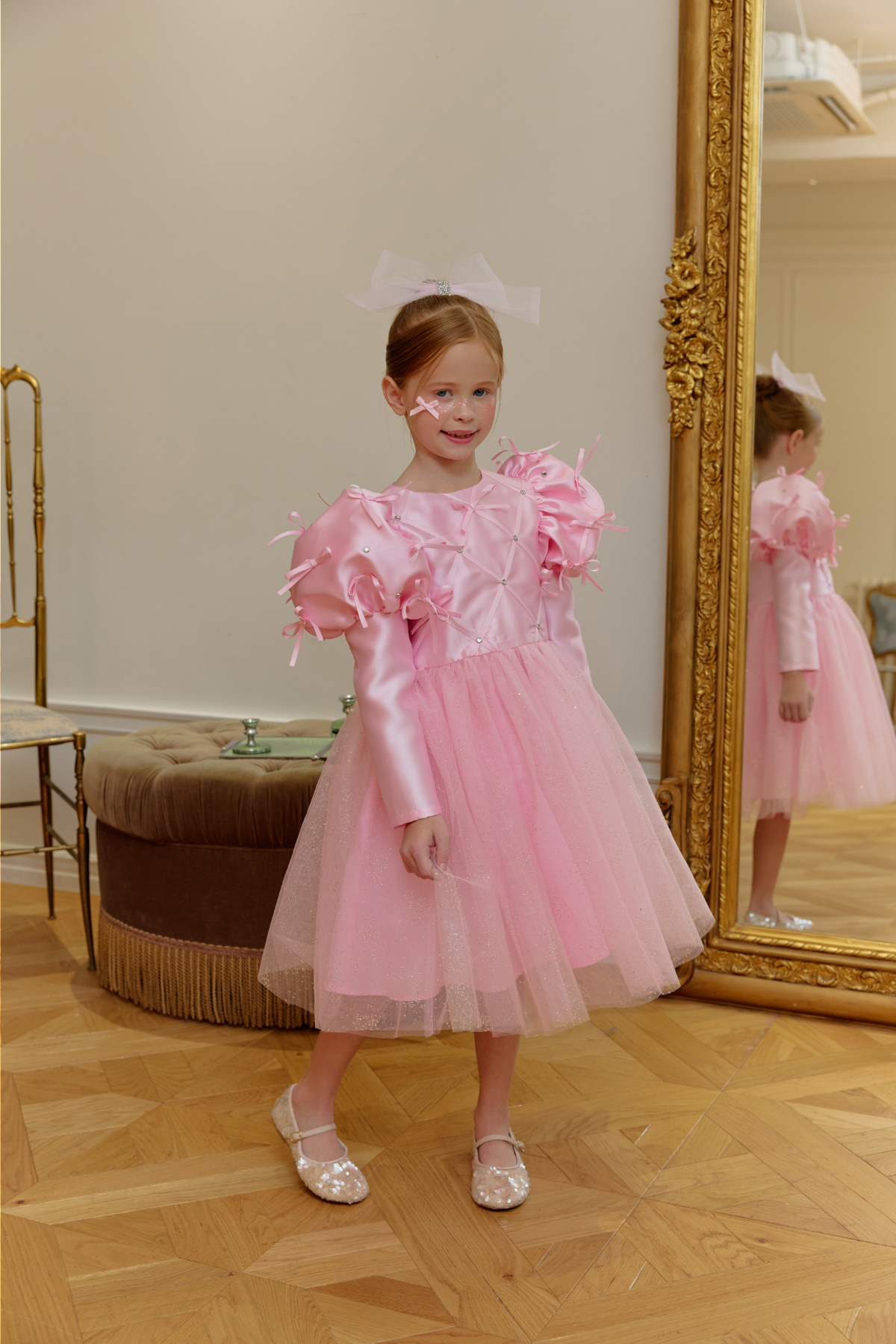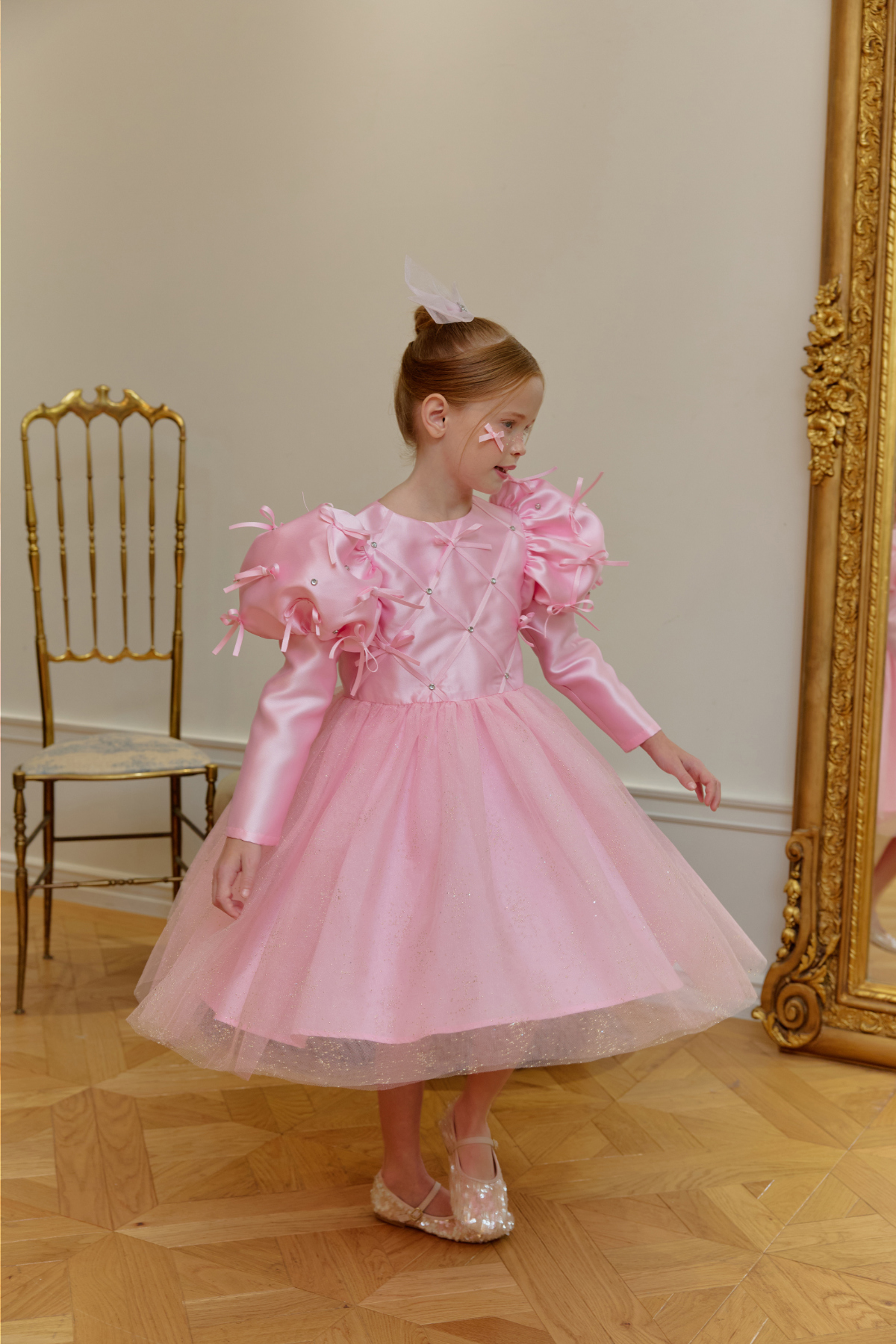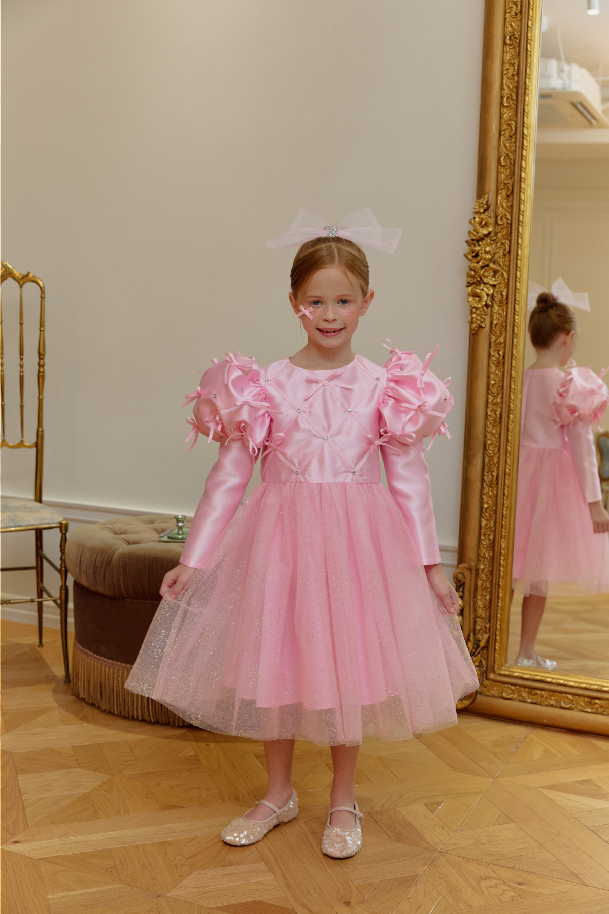 ★캔디 보우 쥬얼 헤어 클립(핑크쥬얼) 세트 특가 오픈★옵션에서 선택해 주세요!--------------------------------------🎀 벨 리본 드레스 (Belle Ribbon Dress)벨 리본 드레스는 작은 아이들이 꿈꾸는 동화 속 주인공의 순간을 선물합니다.볼륨감 있는 리본 장식과 은은하게 반짝이는 튤 스커트가어떤 자리에서도 아이를 가장 빛나게 만들어줘요.코랄 장미빛 같이 화사한 핑크색상으로 더욱 예뻐보이게!키 117cm의 마른 체구 모델은 L(120)을 정사이즈로 착용였습니다.취향에 따라 키 기준 정사이즈, 또는 한 사이즈 크게 선택해 주세요.모델은 캔디 보우 쥬얼 헤어클립-핑크쥬얼 색상과 코디했어요.🌟 제품 특징시그니처 리본 퍼프 디테일어깨의 풍성한 리본 장식이 로맨틱하고 화려한 실루엣을 완성합니다.크리스탈 스터드 & 다이아 패턴의 테잎 장식은은한 광택과 고급스러운 디테일로 럭셔리한 무드를 더합니다.몽글몽글한 글리터 튤 스커트걸을 때마다 반짝이며 사랑스러운 볼륨감을 선사합니다.