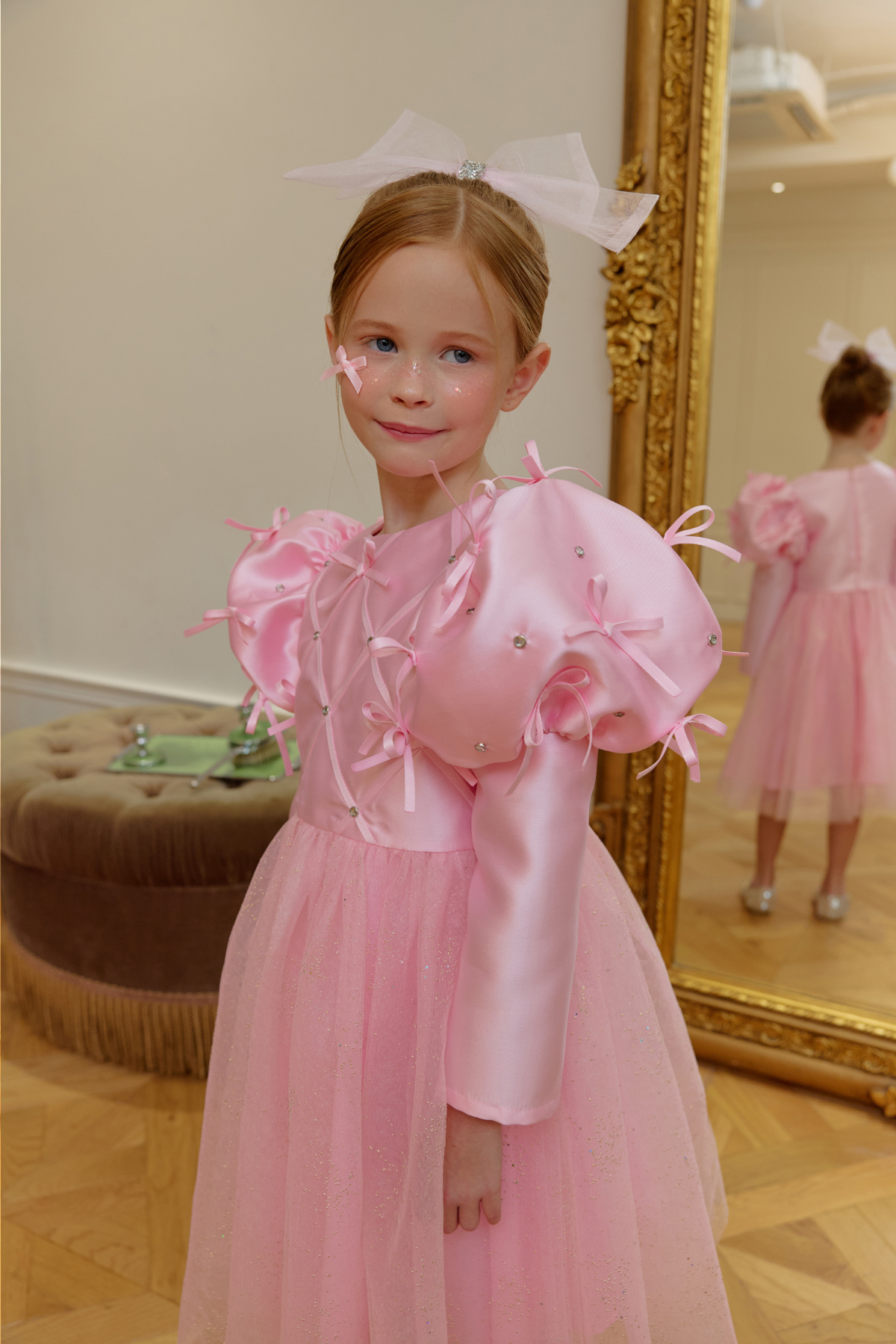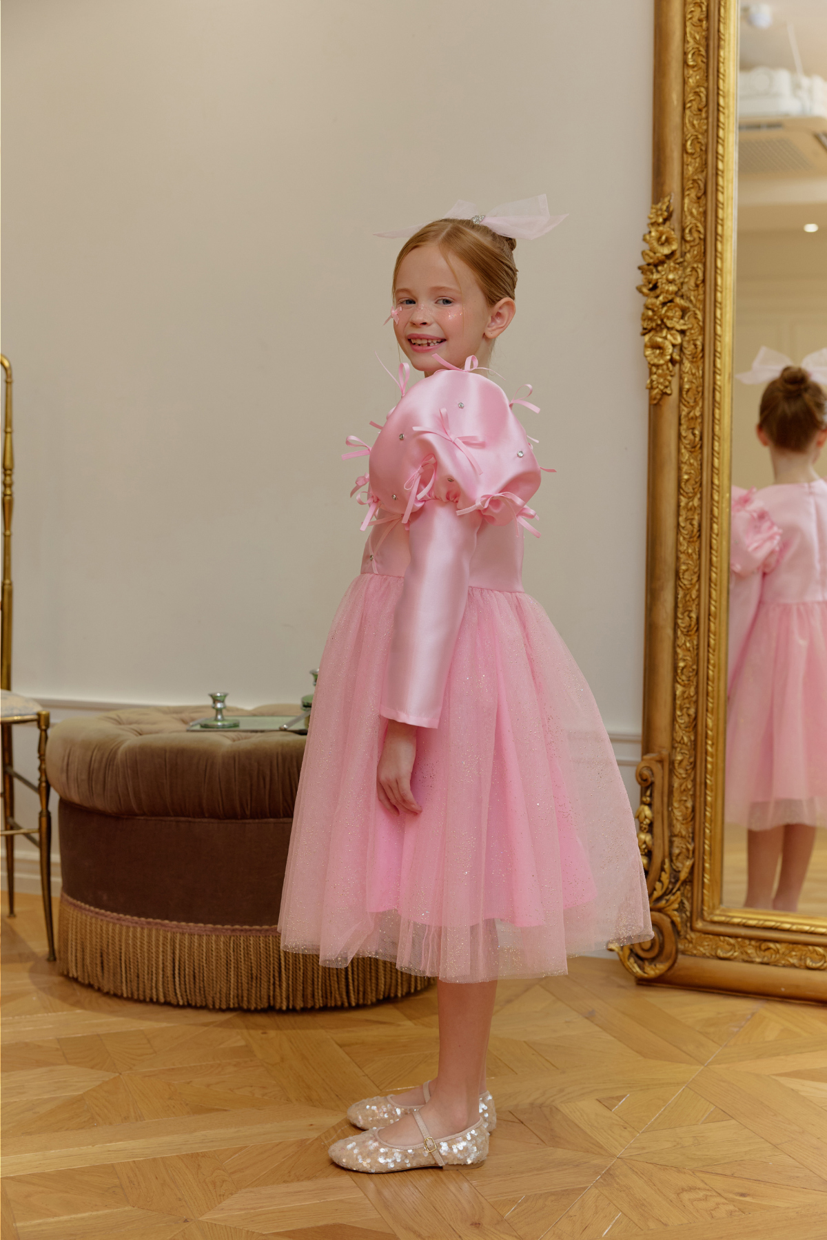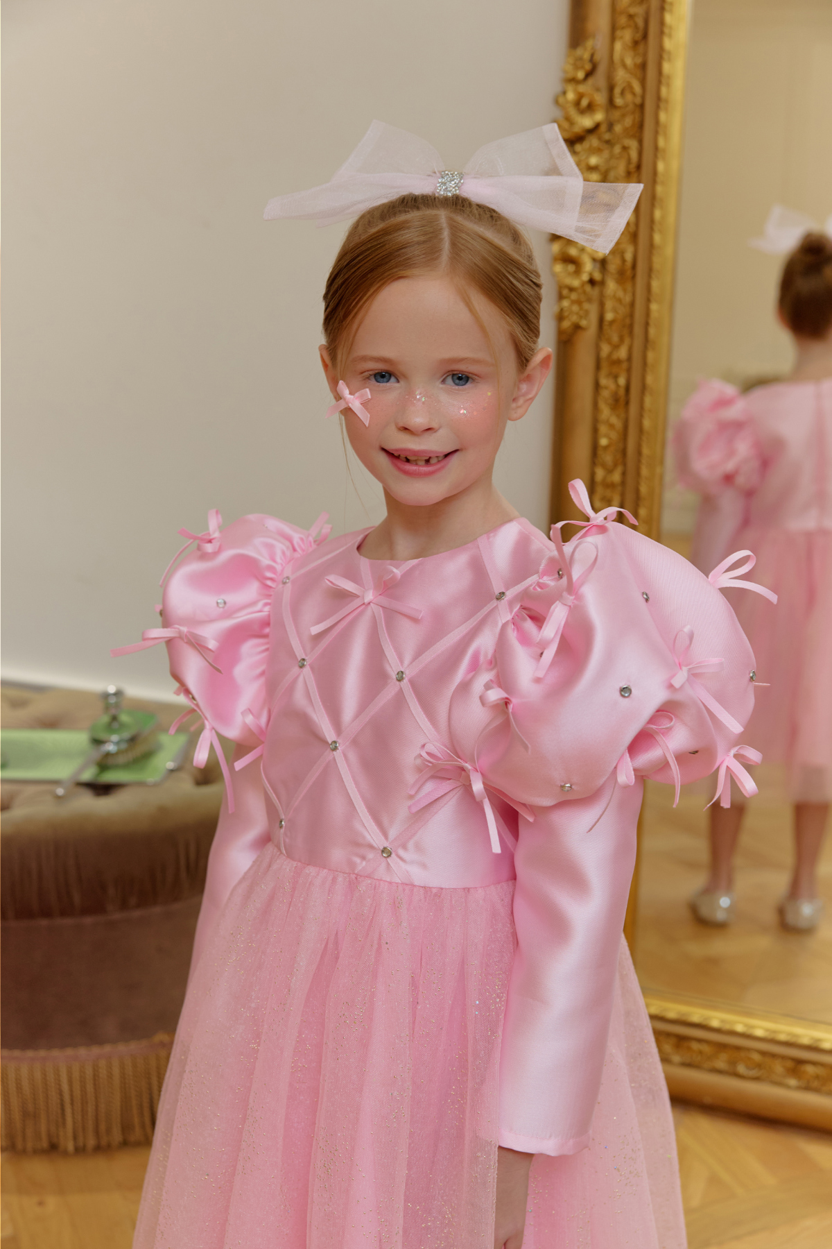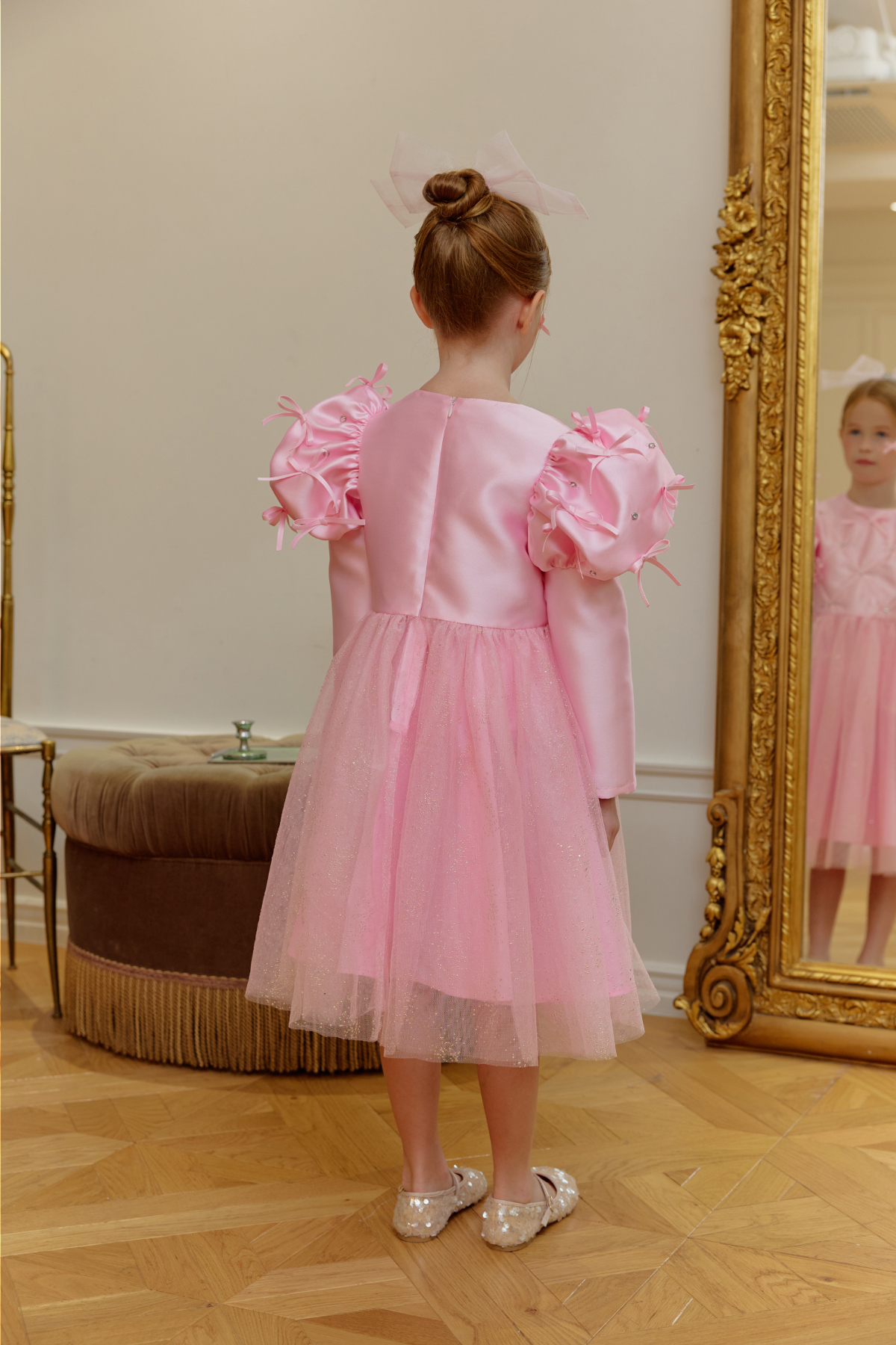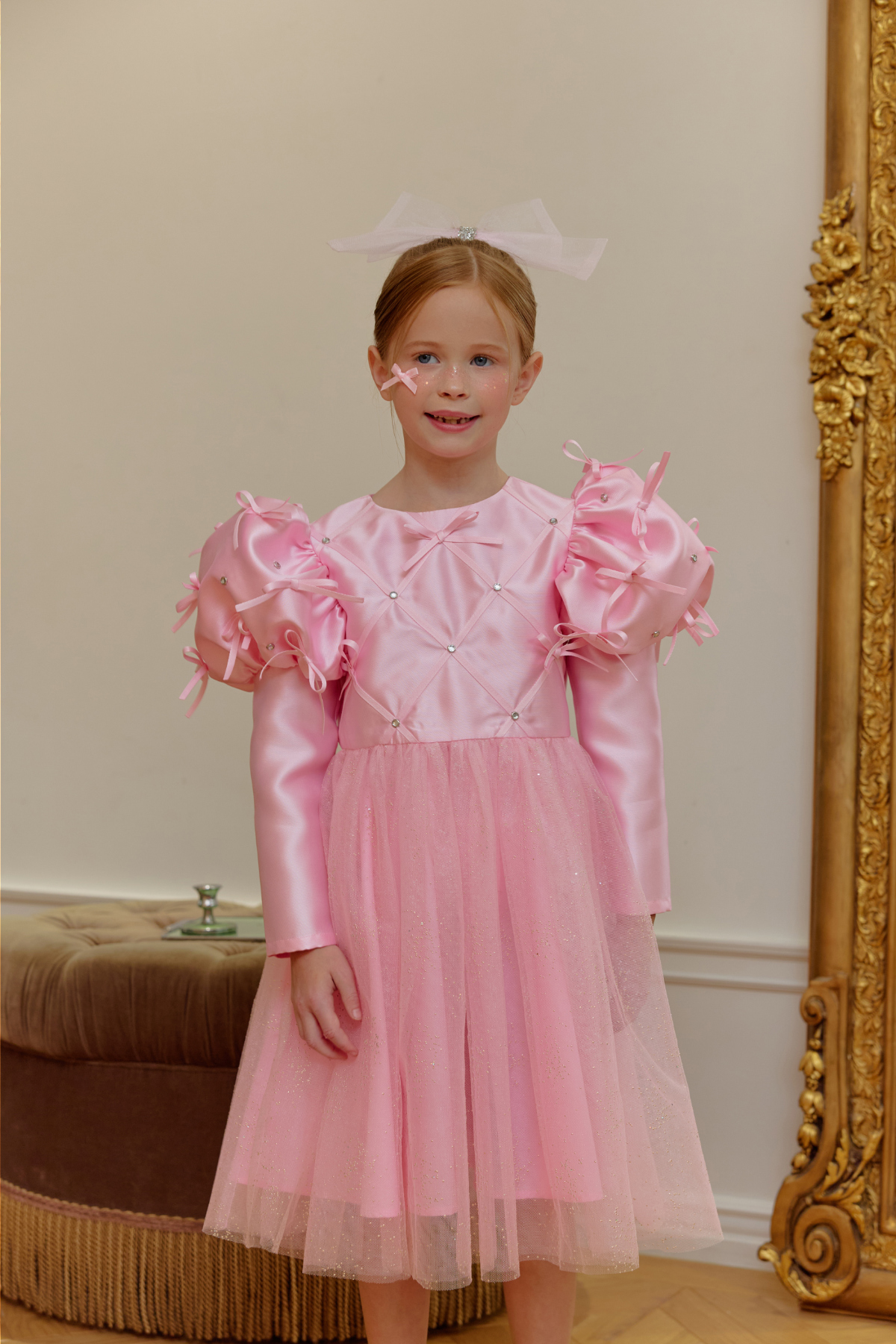 ★캔디 보우 쥬얼 헤어 클립(핑크쥬얼) 세트 특가 오픈★옵션에서 선택해 주세요!--------------------------------------🎀 벨 리본 드레스 (Belle Ribbon Dress)벨 리본 드레스는 작은 아이들이 꿈꾸는 동화 속 주인공의 순간을 선물합니다.볼륨감 있는 리본 장식과 은은하게 반짝이는 튤 스커트가어떤 자리에서도 아이를 가장 빛나게 만들어줘요.코랄 장미빛 같이 화사한 핑크색상으로 더욱 예뻐보이게!키 117cm의 마른 체구 모델은 L(120)을 정사이즈로 착용였습니다.취향에 따라 키 기준 정사이즈, 또는 한 사이즈 크게 선택해 주세요.모델은 캔디 보우 쥬얼 헤어클립-핑크쥬얼 색상과 코디했어요.🌟 제품 특징시그니처 리본 퍼프 디테일어깨의 풍성한 리본 장식이 로맨틱하고 화려한 실루엣을 완성합니다.크리스탈 스터드 & 다이아 패턴의 테잎 장식은은한 광택과 고급스러운 디테일로 럭셔리한 무드를 더합니다.몽글몽글한 글리터 튤 스커트걸을 때마다 반짝이며 사랑스러운 볼륨감을 선사합니다.