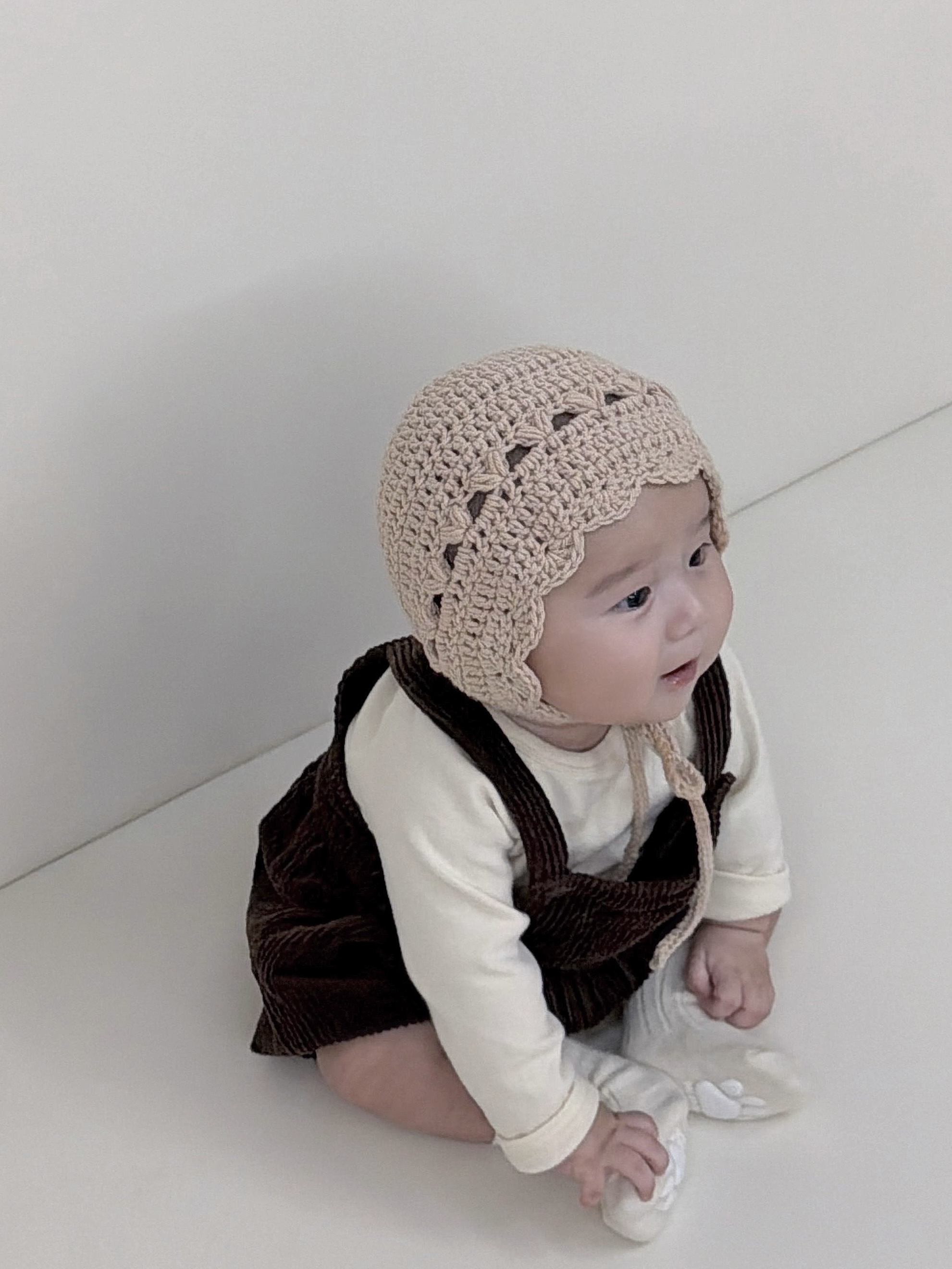 얼굴을 감싸는 하트디자인이 너무 이쁜보넷이예요.