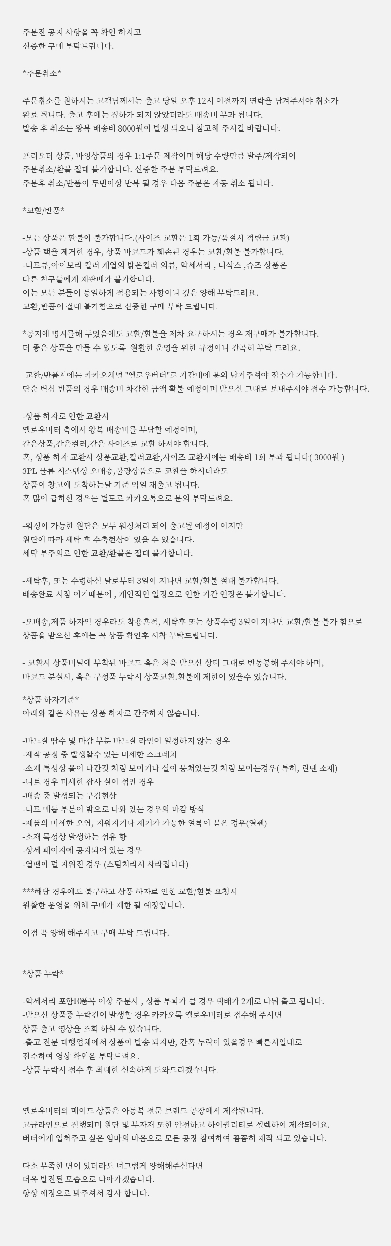 구매하기 색상 옵션 선택 ivory size 옵션 선택 S M L XL 구매동의 옵션 선택 교환/환불 기준에 대한 공지를 확인 후 이에 동의 합니다. 총 상품 금액 0 원 장바구니 바로구매