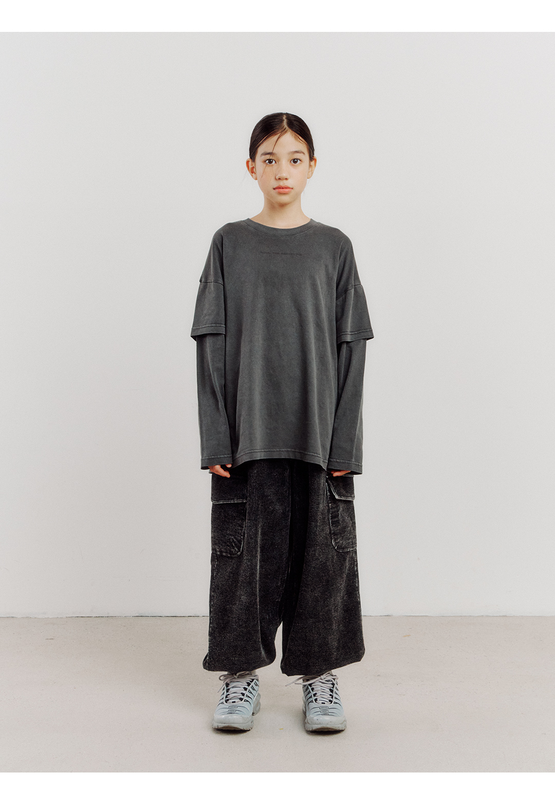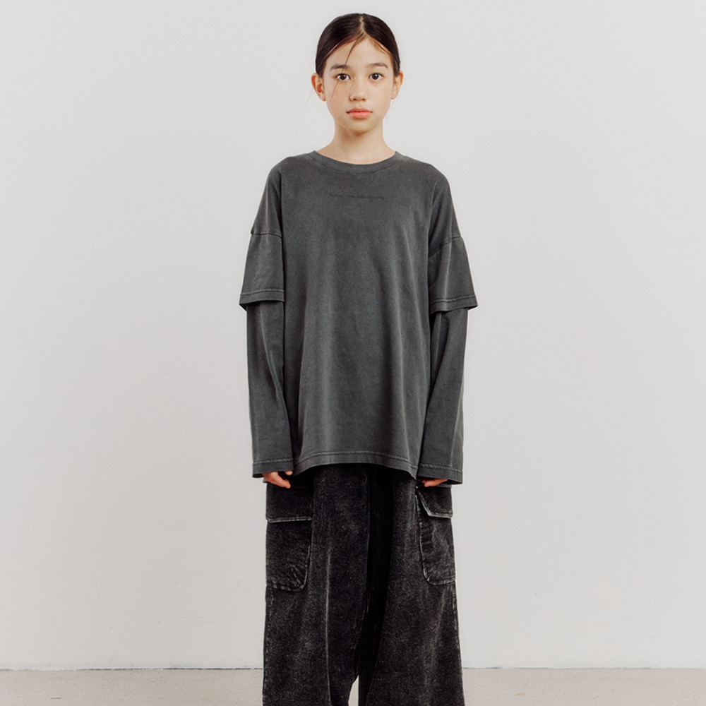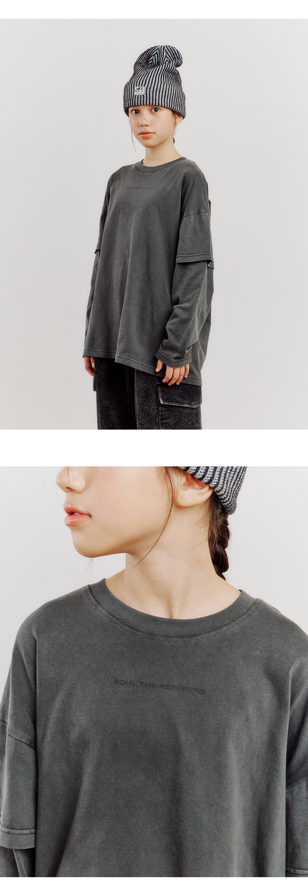 소매에 겹쳐 입은 느낌의 레이어드 디테일과 가슴 부분