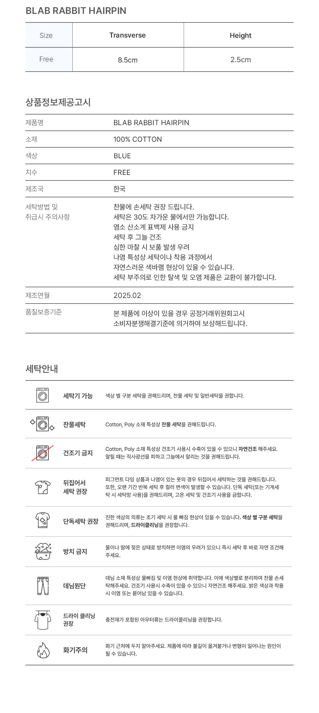 - 세탁방법 및 취급시 주의사항